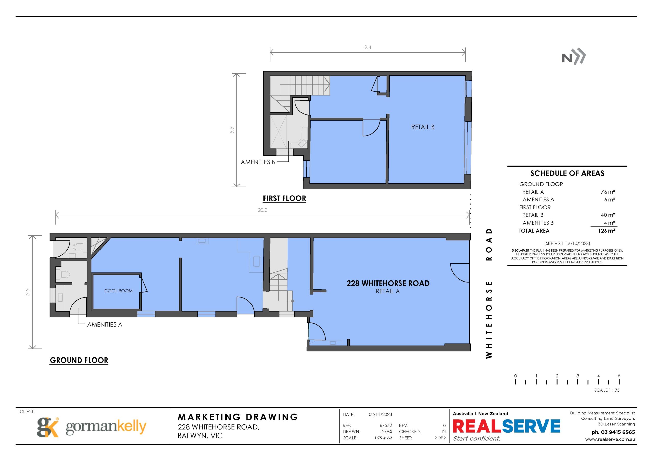✓ Two level retail premises of 126m²* offered as a leased investment
