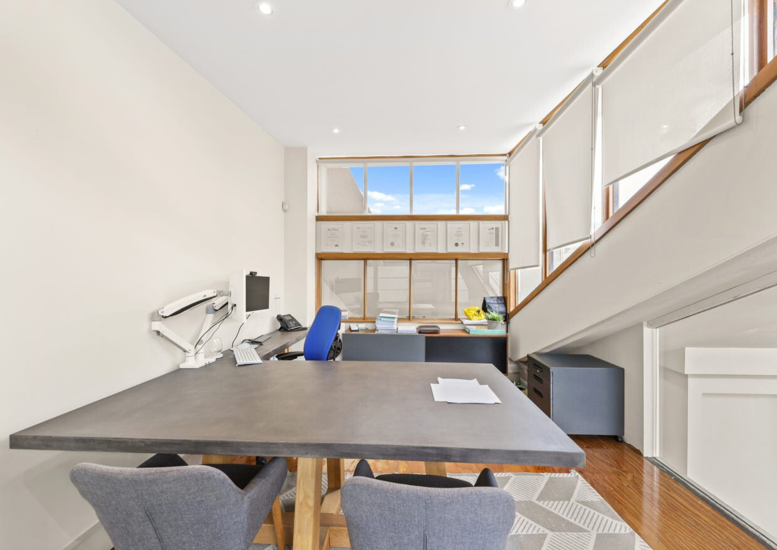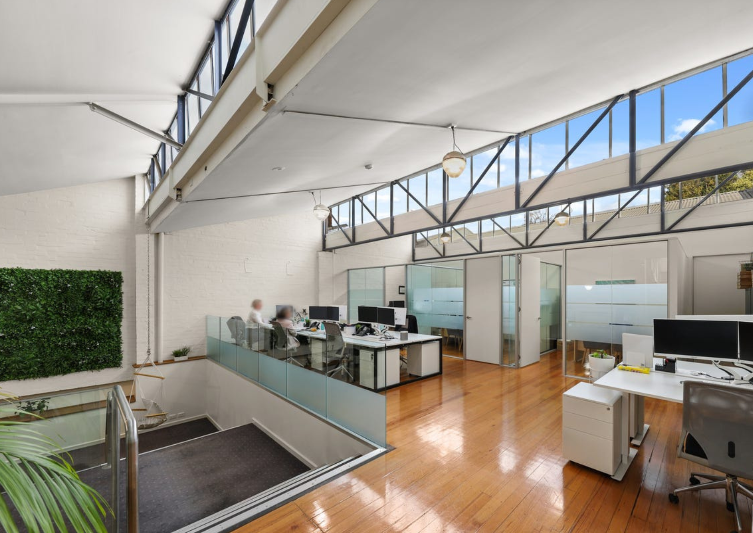 Currently fitted with a reception and waiting area, multiple glass partitioned offices, open plan working areas, bathroom and kitchen all while enveloped by natural light.