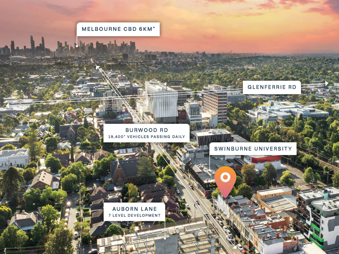 Thriving education, hospitality and retail precinct with Swinburne University, Bunnings Warehouse, Beacon Lighting, Volkswagen, PETstock, Petbarn, Glenferrie Station and Auburn Station all within 1km*.