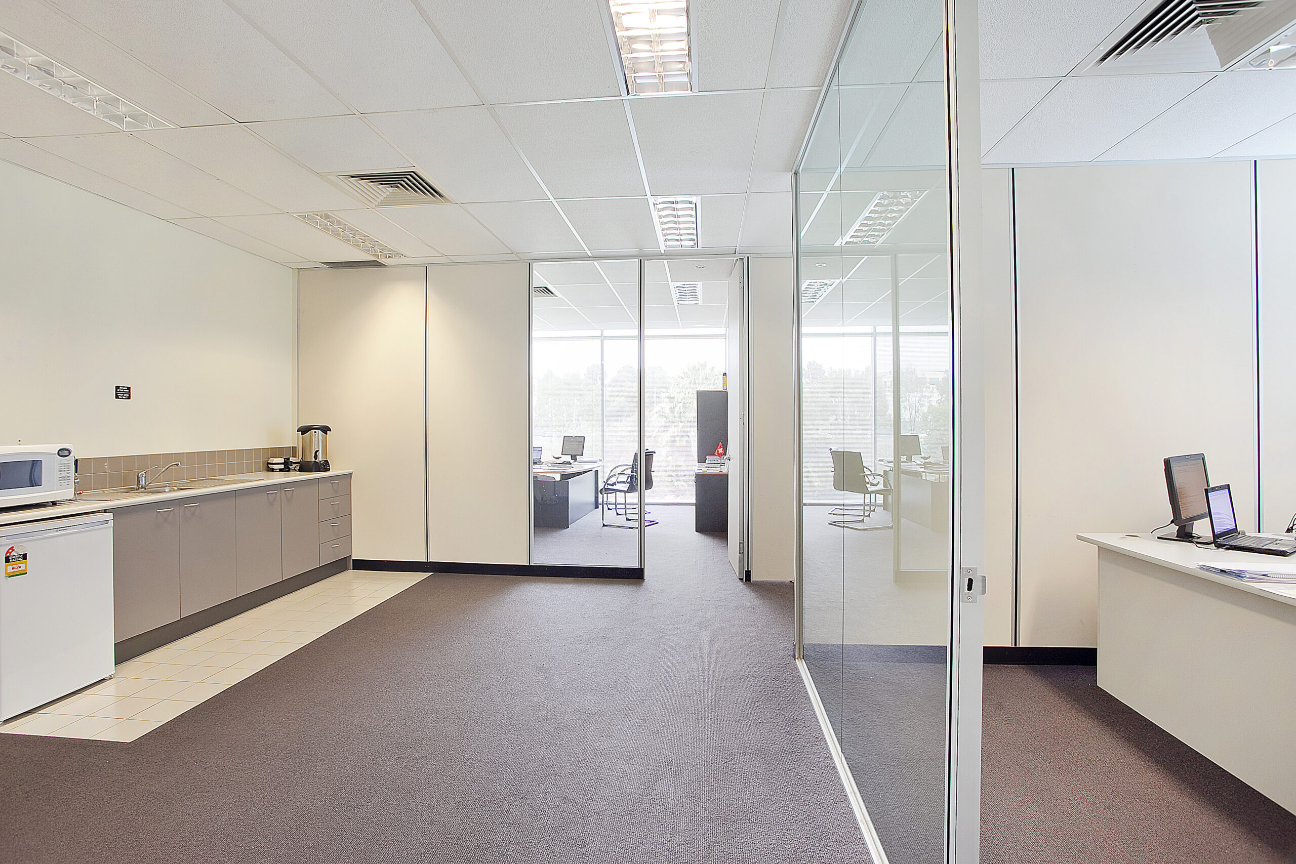 The property is located within the prestigious Tally Ho Business Park which is situated on the corner of Burwood Highway and Springvale Road. The office is surrounded by pleasant parklands, landscaped gardens and a feature lake. Neighbours include National and International companies and departments: Motorola, Country Fire Authority, Emergency Servics for the State Goverment, Hewlett Packard and Quest Burwood East
